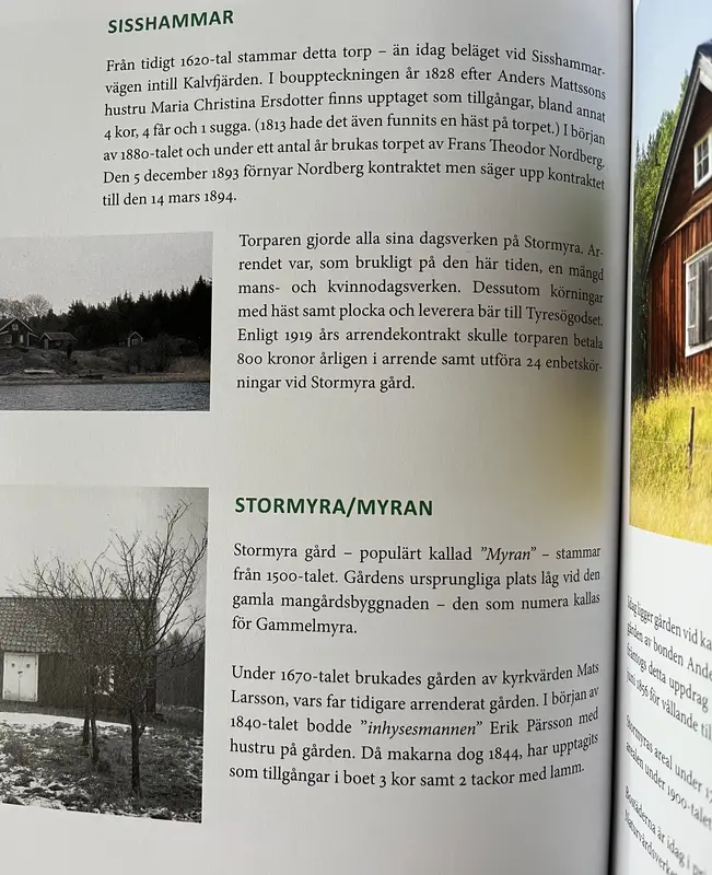 Karin och Tomas Andreason bor på Sisshammar där ett av Tyresös ursprungliga torp från 1600-talet finns bevarade. De berättar om hur de trots mycket jobb med att renovera torpet och boningshuset lyckas vara aktiva i flera av Tyresös föreningar. Karin är idag ordförande i Tyresö Teaterförening. På gården har de höns och får och de använder gamla genuina metoder för att restaurera torpet och huset med hjälp av duktiga vänner och släkt.