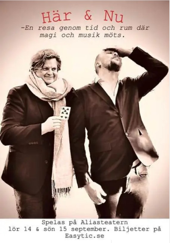 Magnus Emke Eriksson och Johan Gustafson från Tyresö har skapat en föreställning med magi och musik som spelas på Aliasteatern 14 & 15 september. De berättar om sin fina vänskap för Ann Sandin-Lindgren och hur det kom sig att Magnus som nu gör musik och Johan som är frilansande magiker nu har hittat en gemensam föreställning som handlar om en förnimmelse av att vara här och nu.