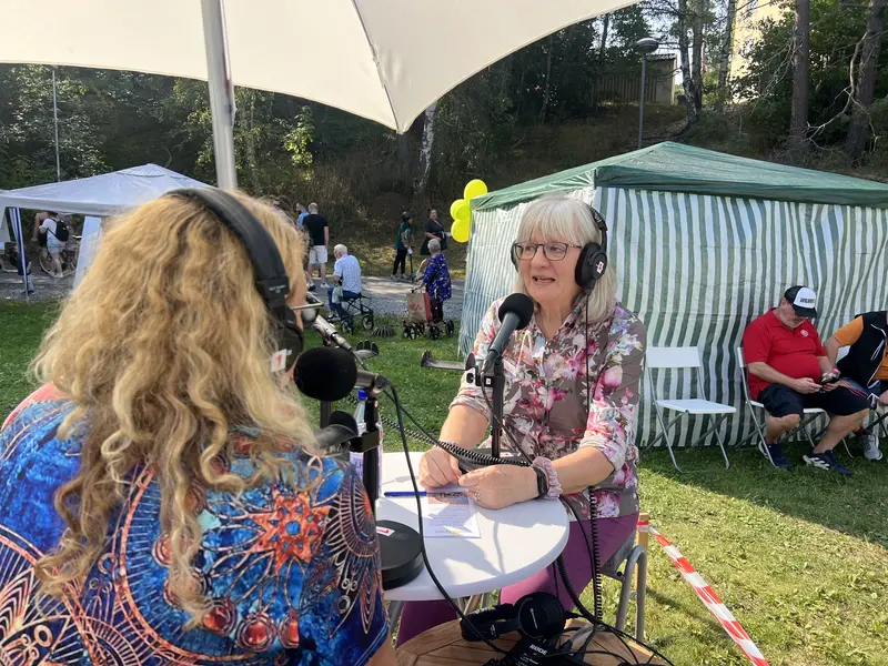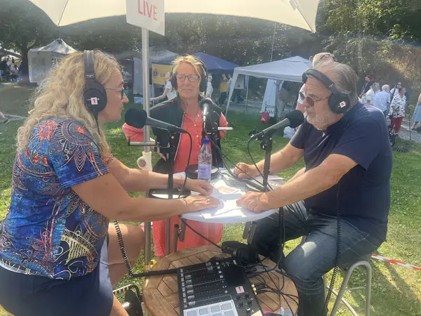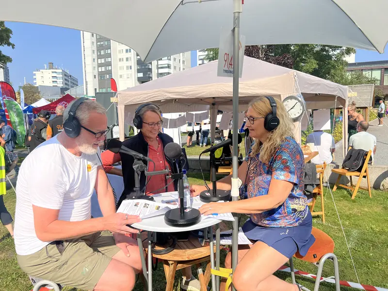 Carin von Walden intervjuar Björn Persson från PRO, Göran Sundgren från Tyresö Hembygdsförening och Ewa Kardell från SPF. Ett av många program från Tyresöfestivalen då radion sände LIVE i femtimmar.