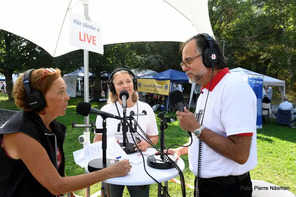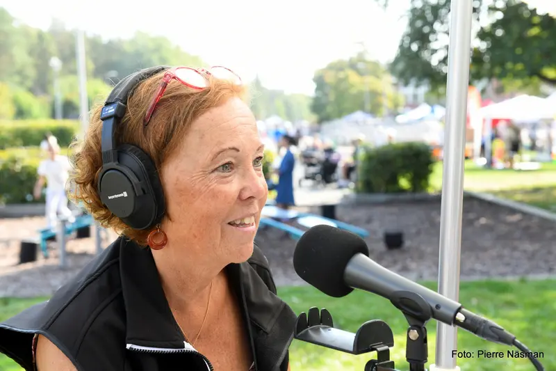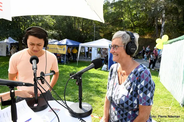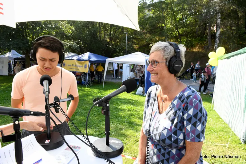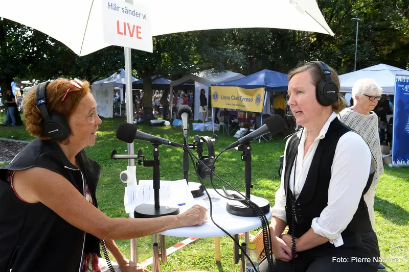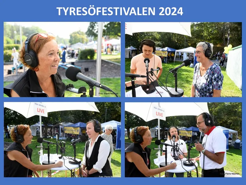 Ann Sandin-Lindgren intervjuar Maria Bylund och Fredrik Allanson från Tyresökören, Lisa Norgren Benedictsson och Fernando Quiroga från Tyresö Utlands- och Fredsförening samt Karin Andreason från Tyresö Teaterförening. Ett av många program som spelades in när Tyresöradion sände LIVE i fem timmar under Tyresöfestivalen.