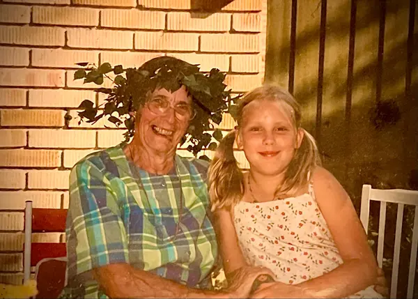 Ingeborg 2002 med sin då 9-åriga sondotter Vera på Stallvägen i Bollmora.