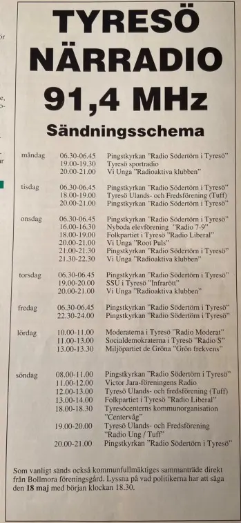Tyresö Närradioförenings ordförande Anders Linder samtalar med Ann Sandin-Lindgren om Tyresöradions historia. Om hur många aktiva föreningar i Tyresö som började sända närradio 1985. När intresset avtog efter ett antal år skapade Åke Sandin en slinga som går dygnet runt med intervjuer av kända och okända Tyresöbor. En slinga som nu är digital och finns på många plattformar. Nästa år firar föreningen 40 år och då ska det bli fest.
