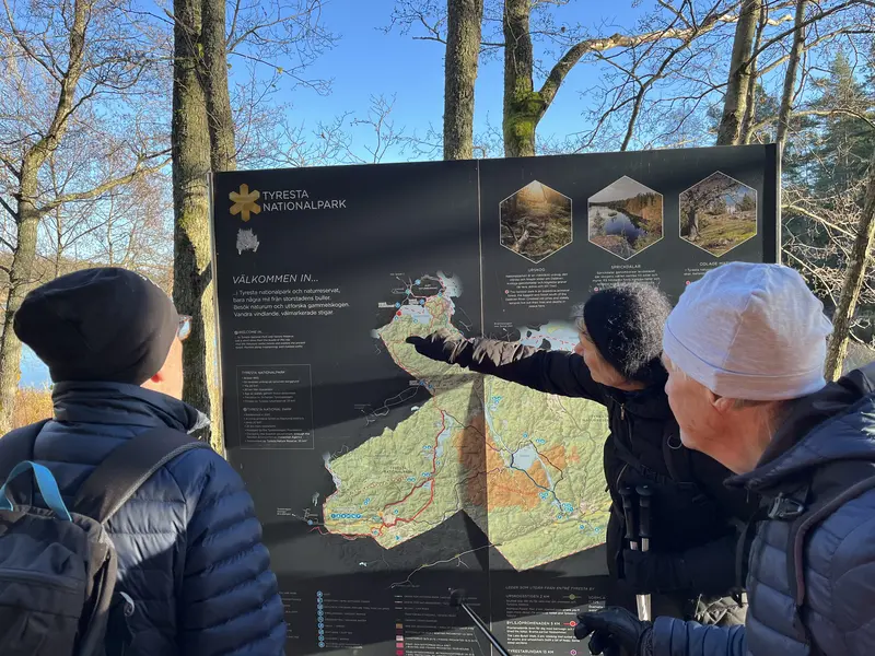 Vid Gammelström finns det en fin tavla som visar var i Tyresta naturreservat man är.