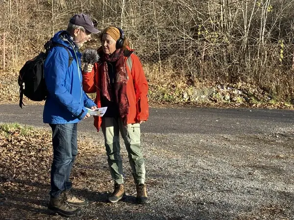 Ann Sandin-Lindgren spelar in när Bernt Karlson berättar om vad vi ser.