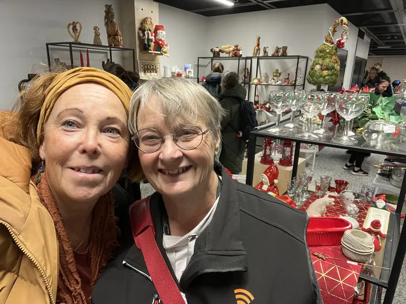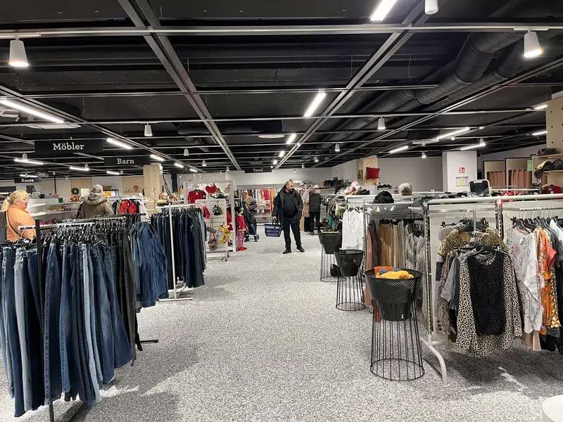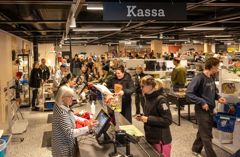 Programmakarna Ann Sandin-Lindgren och Lena Hjelmérus besöker den nyöppnade PMU Pingstkyrkan Second Hand på Bollmoravägen 131. Fullt med folk! En massa fynd! Julsaker, kläder, vacker porslin och en fantastisk lokal. De pratar med besökare och några som jobbar denna dag som Sören Persson och Miguel Malaguti som berättar om vilken succé den nya lokalen innebär. Vid invigningen var det hundratals besökare som passade på att fynda.