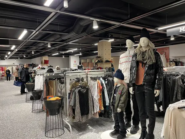 En fin klädavdelning med provhytter