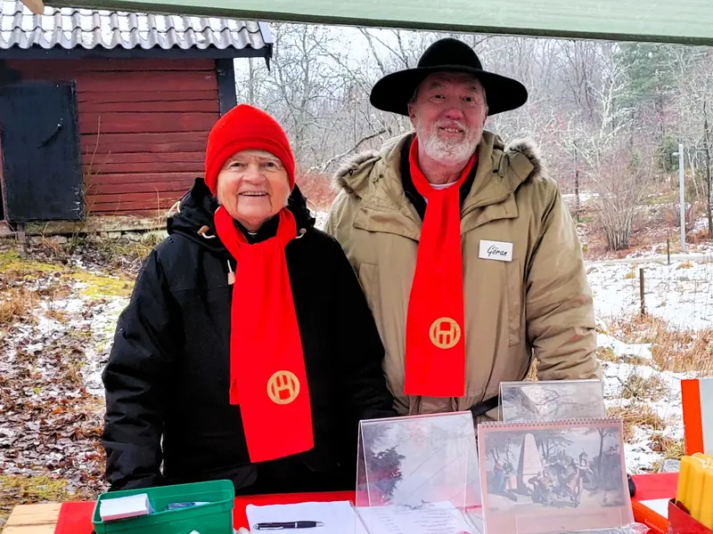 Folkfest, fantastiskt trevligt, väldigt roligt, hög kvalitet, underbart att vara här. Det är några av de repliker som hördes i det strilande regnet vid Hembygdsförenings julmarknad vid båtsmanstorpet Ahlstorp den 8 december. Tyresö Musikklasser sjöng underbart vackert och kommersen var i full gång.