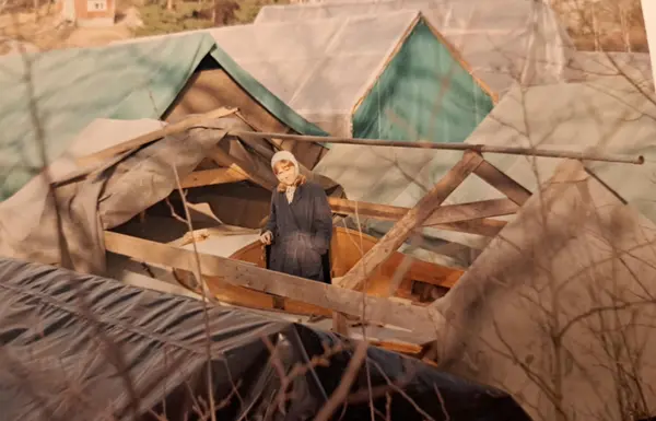 Bernts fru Inger som skrapar och slipar på J 18 .