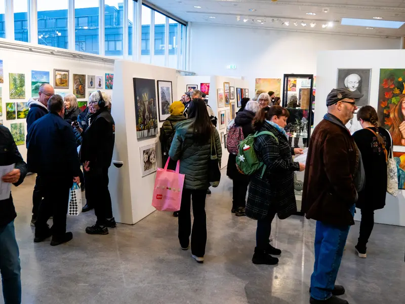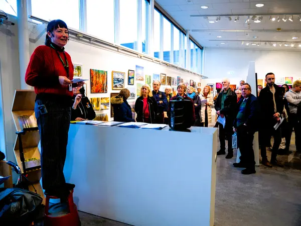Kommunens konstansvariga Charlotte Gyllner hälsade välkommen till årets julsalong och kulturchefen Marie Öst serverade varm glögg till den förväntansfulla publiken som var full av beundran av de spännande verken. Programmakare Gunnel Agrell Lundgren
