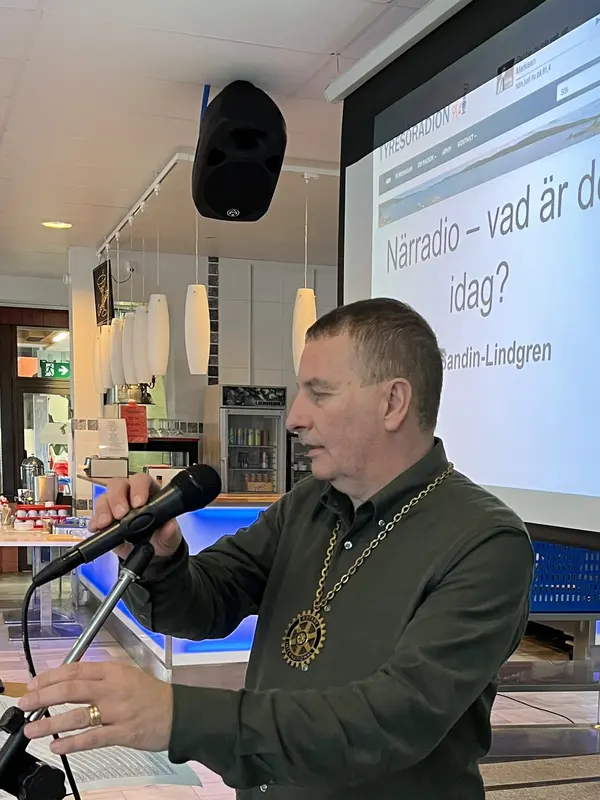 Tyresöradions redaktör Ann Sandin-Lindgren blev inbjuden av Haninge-Tyresö Rotaryklubb att hålla ett föredrag om Tyresöradion. Föreningen träffas varje fredag på Vegabaren i Haninge där de äter en måltid tillsammans och lyssnar på en föredragshållare. Medlemmen och Tyresöbon Claes Löfgren berättar varför han är med och presidenten Magnus Brandt berättar om Rotarys verksam. Även en yngre medlem Alvin Sahlgren intervjuas och Vegabarens delägare Carlo Tacolla berättar lite om Vegabaren och varför han är med i Rotary.