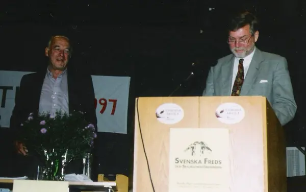 Åke får kungens pris Illis Quorum 1997 av förra försvarsminister och talmannen Björn von Sydow