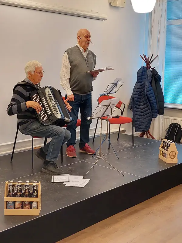 Sång och musik av Bernt Lind och Bo Toresson som framförde visor från Allan Edwall's skattkista på ett PRO-möte.