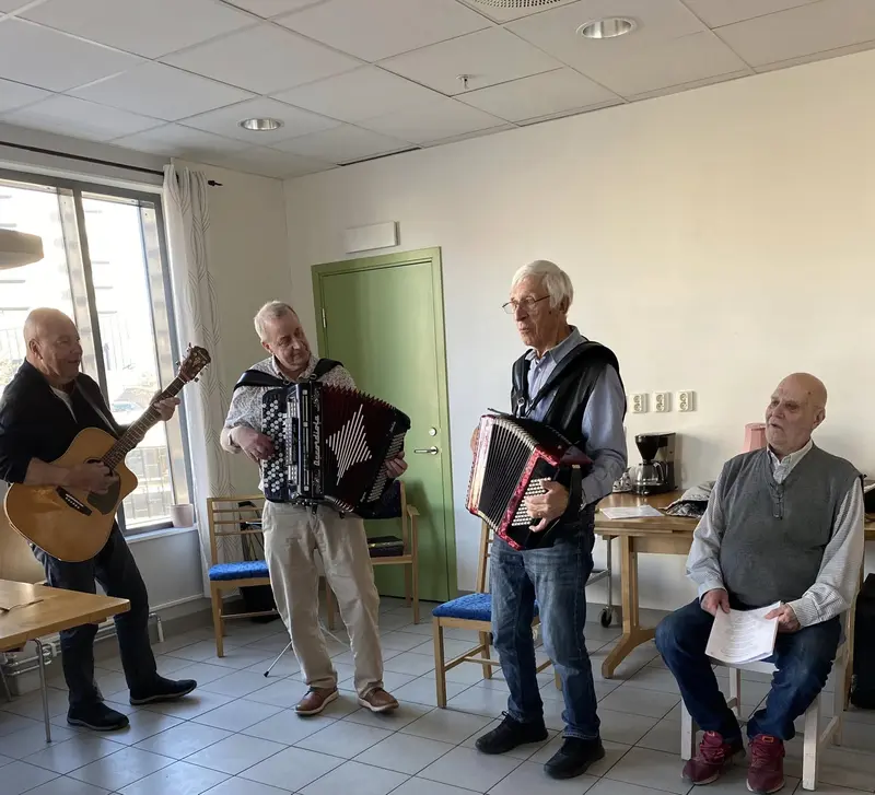 Leif, Gunnar Olofsson, Bosse Toresson och Bernt Lind spelar på ett möte.