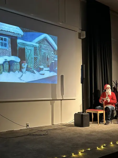 På PRO:s möte i december var Bernt Lind tomten som läste Viktor Rydbergs Tomten till fina illustrationer.