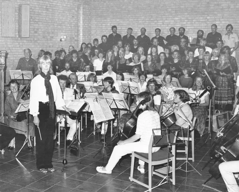 Tyresökören och Tyresö orkesterförening under ledning av Elisabeth Sellergren i början av 80-talet.