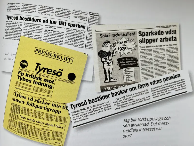 Tidningsskriverier i samband med att Per-Åke blir uppsagd från TYBO 2003 och sedan fick sparken 2004.