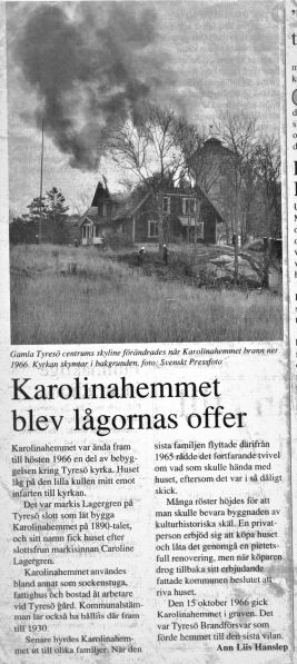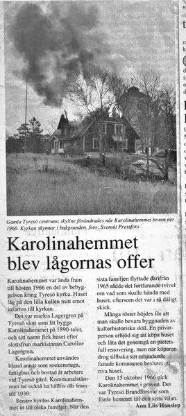 Nordväst om Tyresö kyrka, mot kyrkogården, låg Karolinahemmet. Platsen