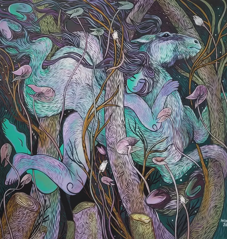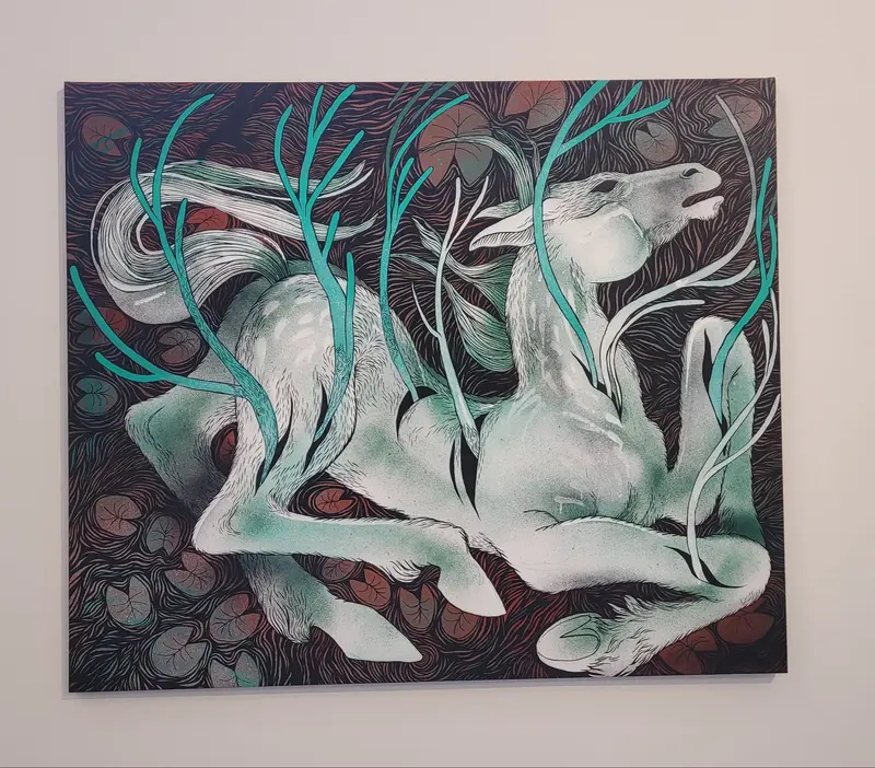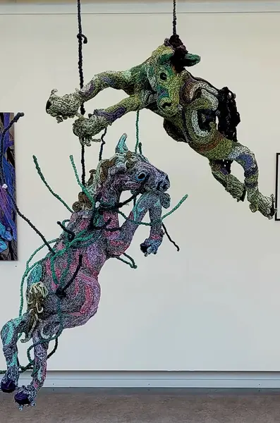 Hilma Franzon ställer ut på Tyresö konsthall. Fantastiskt vackra verk i måleri och skulptur. En utställning med dubbla bottnar och mörka undertoner. Glädjen över hästen mot sorgen över en skog som försvinner. Det är poetiskt och spännande med många nyanser och olika material. Hilma var faktiskt muralmålare från början. Programmakare Gunnel Agrell Lundgren