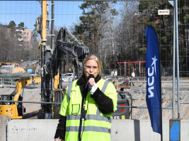 Nu har de första spadtagen tagits till Njupkärrs nya skola med idrottshall och bollplan som ska stå klar till höstterminen 2027. Skolchefen Martin Widholm, de ansvariga politikerna Klara Watmani (S) och Emelie Hedberg (M) fick tillsammans med NCC:s representant Peter Höög hålla tal och berätta om bygget. Ann Sandin-Lindgren passade också på att ställa frågor till projektchefen på NCC Niklas Nielheimer, Tyresö kommuns projektledare Anna Byfors och kommunalrådet Fredrik Bergkuist (M).