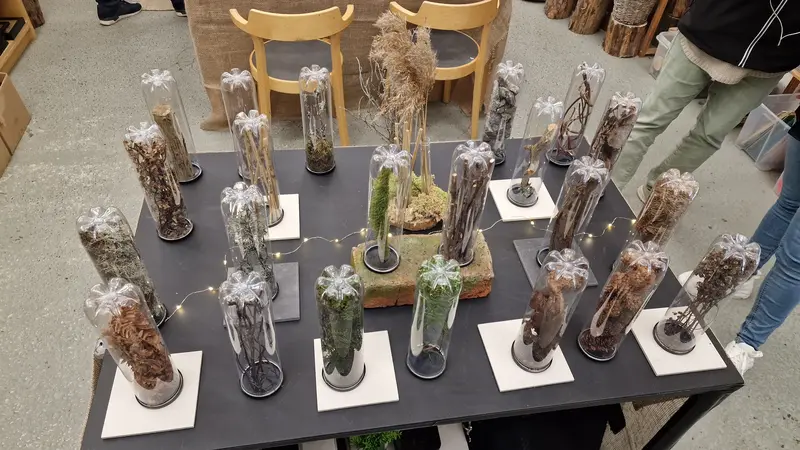 En utställning vad hur man kan använda förbrukade rör till tennisbollar på ett kreativt sätt.