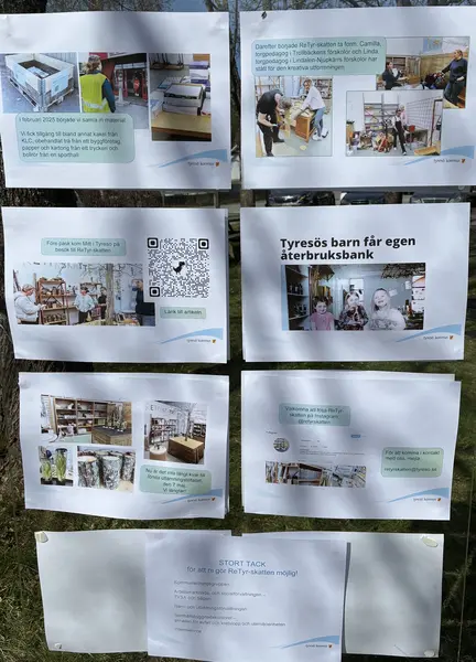 Ett reportage en vacker torsdag då Retyrskatten invigdes – återbruk till förskola och skola - i TYSA:s lokaler på Plogstigen 3 i Trollbäcken. Där kan nu lärare och pedagoger i de kommunala förskolorna och skolorna hämta naturmaterial och återbruksmaterial till undervisningen och bygga upp kreativa lärmiljöer. Kommunalråden Peter Frej (M) och Klara Watmani (S) fick klippa banden och Maria Samrell och Maria Isaksson som har lett projektet berättade om verksamheten. Tyresöradion Ann Sandin-Lindgrens var på plats och intervjuade många av de personer som gjort detta möjligt.
