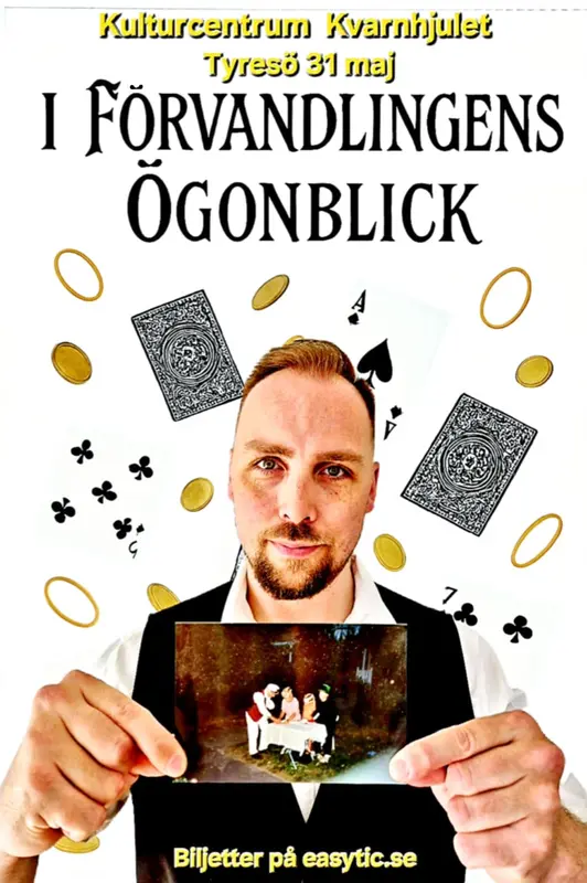 Johan Gustafson från Tyresö är frilansande magiker. Nu sätter han upp föreställningen "I förvandlingens ögonblick" i Nyforssalen på Kvarnhjulet kl. 19.30 lördagen den 31 maj.