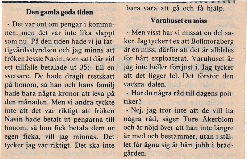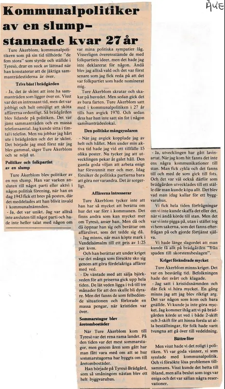En intervju med Ture Åkerblom 1975 i Tyresö Nyheter