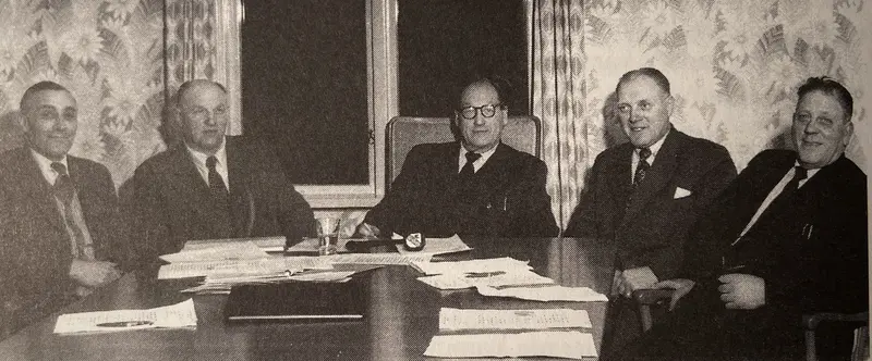 De kallades i folkmun "de fem stora" på 50-talet. Det var från vänster Ivar Lundell (FP), Tomas morfar Ture Åkerblom (FP), J K T Wisén (S), Gunnar Gyllnert (S) och Håkan Hasselgren (S).