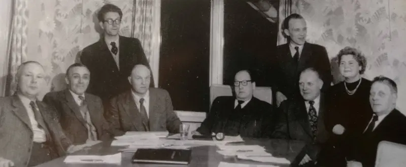 Dåvarande kommunledning samlade med Gunnar Tunevi stående. Sittande från vänster: Arthur Bjärgård, Ivar Lundell, Ture Åkerblom, John Wisén, Gunnar Gyllnert, Gertrud Sjögren och Håkan Hasselgren. Från boken som heter "Tyresö från forntid till nutid"! av Gunnar Tunevi och Ulf Sellergren.