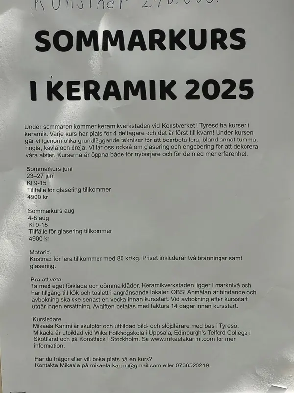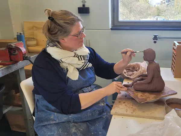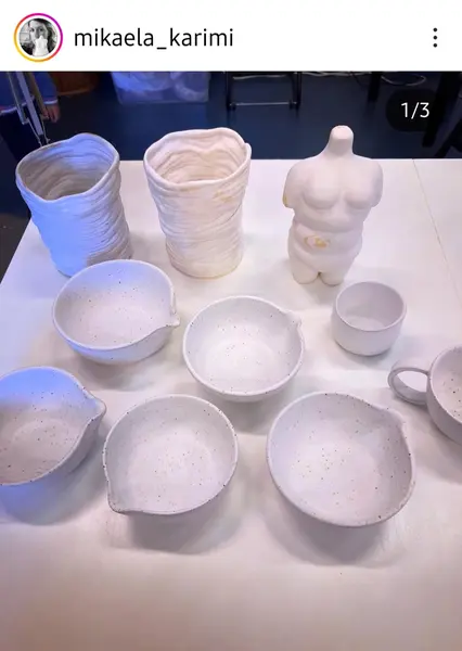När konstnärerna på KonstVerket hade öppet hus den 26 april 2025 demonstrerade kermikkonstnären och skulptören Mikaela Karimi hela processen från lera till konstverk. Tumma, ringla, kavla, dreja. I början får många verk ett mycket personligt utseende! Hon håller kurser för såväl nybörjare som mer erfarna. Se mikaelakarimi.com. Hon berättar också om sin forskning om Slöjdvetenskap och digitala verktyg. Reporter Gunnel Agrell Lundgren Lyssna gärna på ett annat program på Tyresöradion om Mikaela Karimi