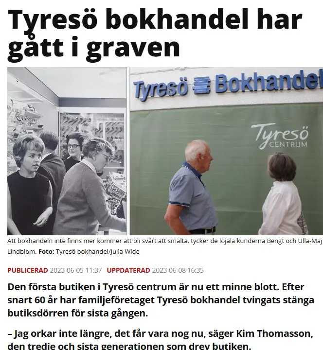 En artikel i Mitt i Tyresö 2023 då Jacks son Kim Thomasson tvingades stänga.