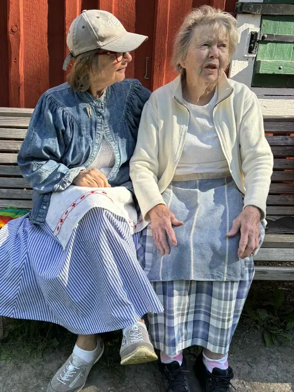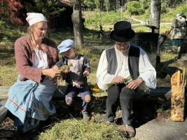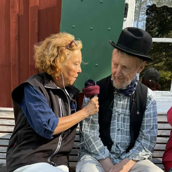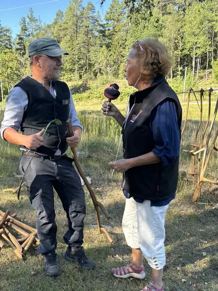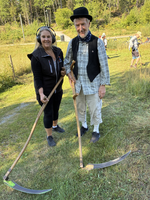 Programmakarna Ann Sandin-Lindgren och Carina Högberg var med på slåttern vid båtmanstorpet Ahlstorp en vacker lördag i mitten av augusti. Carina fick lära sig slå med lie av Jonas Hedlund och Göran Magnusson berättade historien om torpet som sköts av hembygdsföreningen. De fick också en pratstund och åktur med ägarna av hästen Vinter som körde barn och äldre fram och tillbaka till Alby. Henrik Hallgren spelade flöjt och berättade sagor.
