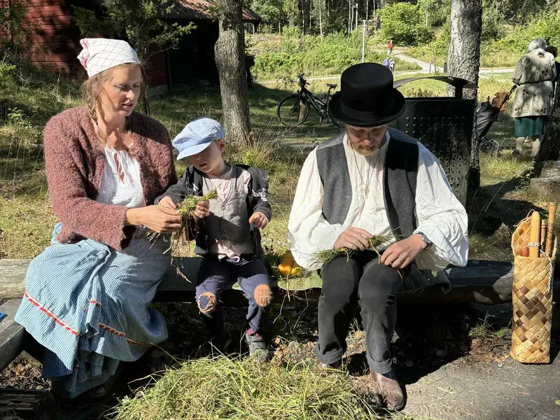 Henrik Hallgren med fru Karin och sonen Arvid visar hur man gör dockor av hö