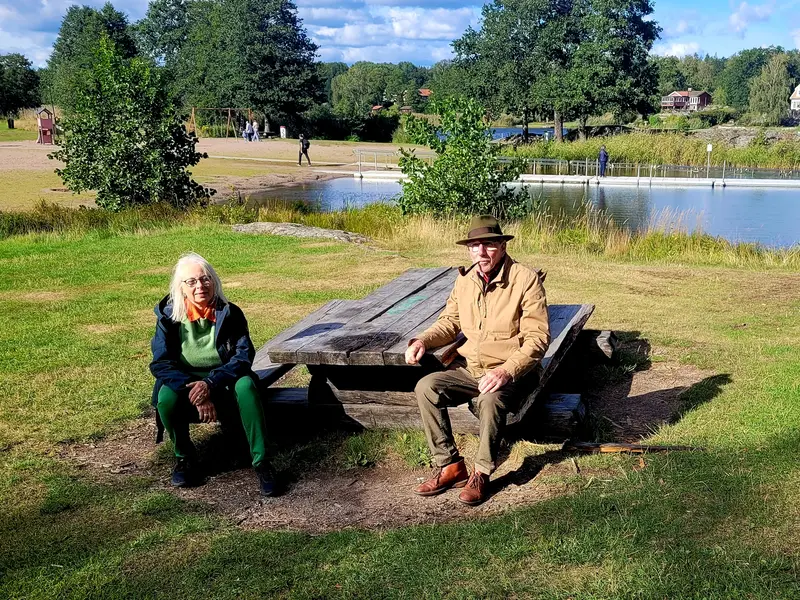 Solen tittar fram när Lisa Malmgren och John Löf pustar ut efter promenaden.