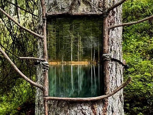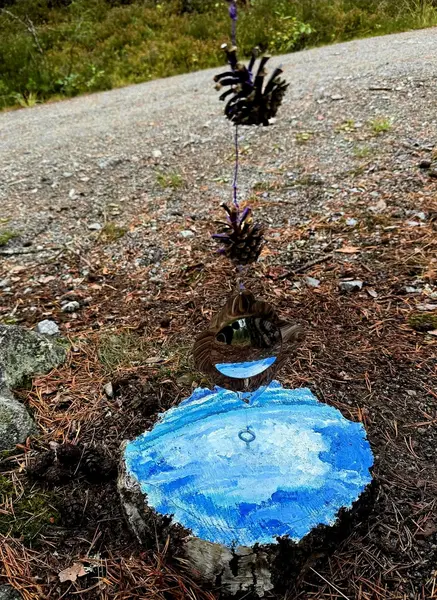 Del av ett av de vackra konstverken på utställningen. Det finns flera på Facebook. Sök på Sanna Hagström eller Konstrundan i skogen.