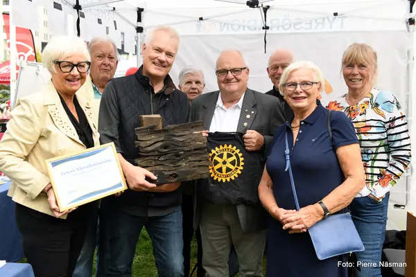 Presidenten i Rotary Tommy Lekenmyr kom till Tyresöfestivalen och gav Tyresö Närradioförening ett vandringspris och ett stipendium.