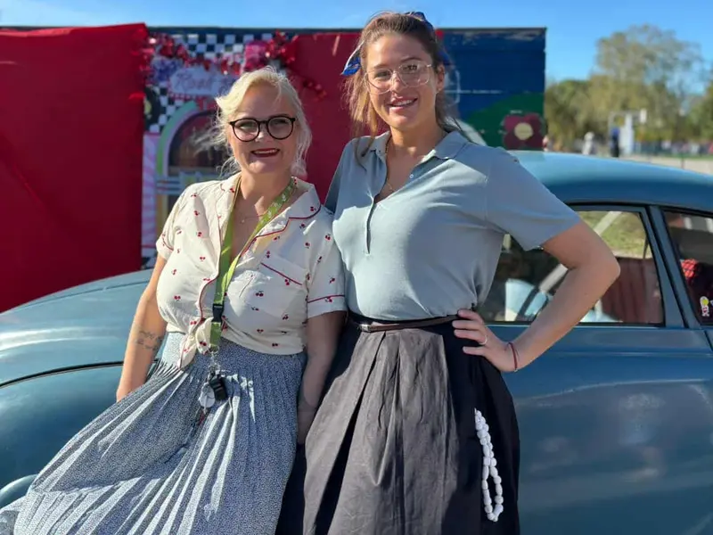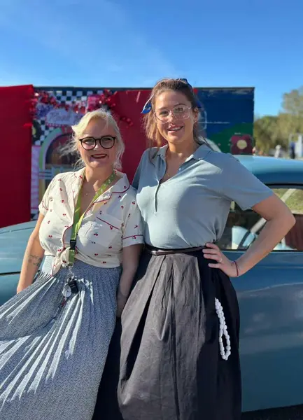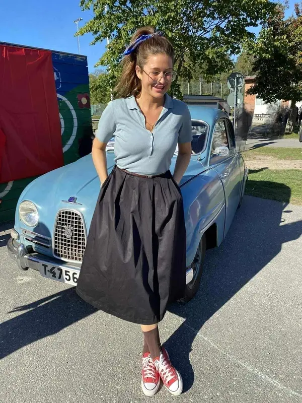 Tyresö skola 70års jubileum, Paulina Jantz rockabillytema. Bilen är en Saab årsmodell 1959, tvåtaktare.
