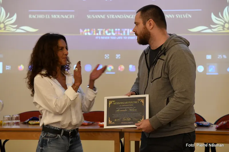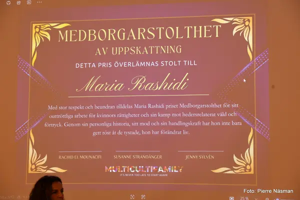Maria Rashidi fick priset Medborgarstolthet av föreningen Multicultifamilys Rachid El Mounacifi