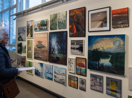 Årets Julsalong i Tyresö konsthall är en fantastisk kollektion av färgsprakande målningar, små keramikverk och foton. En stor kreativitet och berättarglädje. Michael Jacksons strumpor. En ko och ett får har en mysig ost- och vinkväll .En brandman i trä sprutar vatten av garn. Allt detta och mycket mer i dynamisk och vacker hängning av Charlotte Gyllner.. Kom och titta och förundras! Programmakare Gunnel Agrell Lundgren,