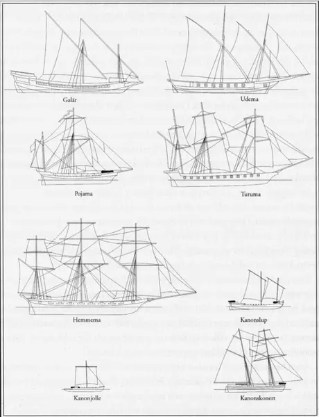 De olika båttyperna som fanns 1700-talet