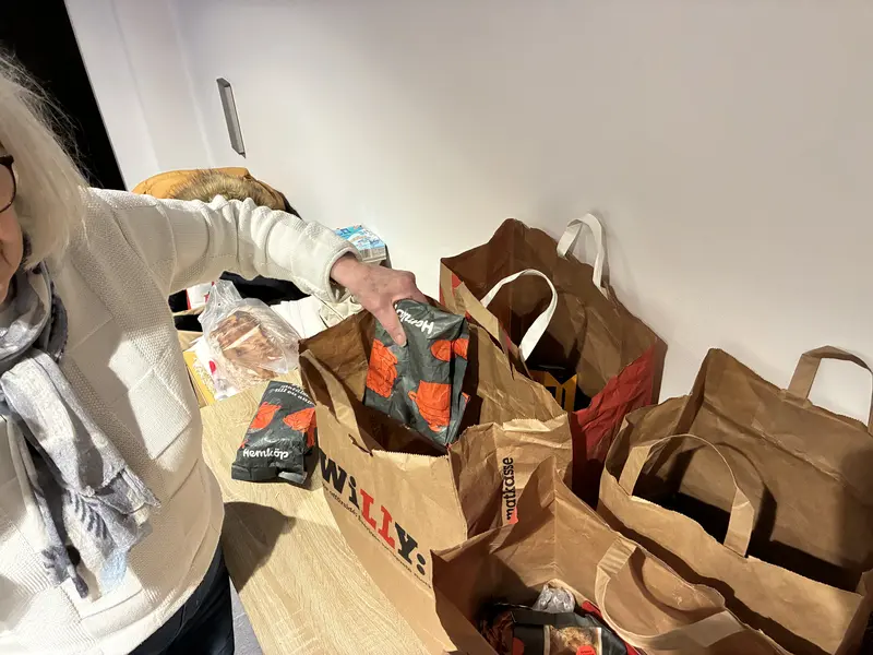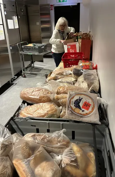 Varje torsdag gör volontärer på LP-stiftelsen i Pingstkyrkans lokaler iordning matkassar för familjer i Tyresö som inte får ekonomin att gå ihop. Kicki Helgesson visar runt Ann Sandin-Lindgren i lokalerna i den nya Pingstkyrkan och föreståndaren Sören Persson berättar om LP-stiftelsens verksamhet i Tyresö. Jimmy Linnér som varit med från början med matutdelningen förklarar hur de började och pastor Carl-Johan Freed intervjuas också av Ann Sandin-Lindgren. Tyresöprofilen Miza Landström, som driver skolor i Kongo, beskriver vad Pingstkyrkans verksamhet betyder för barn i Kongo.