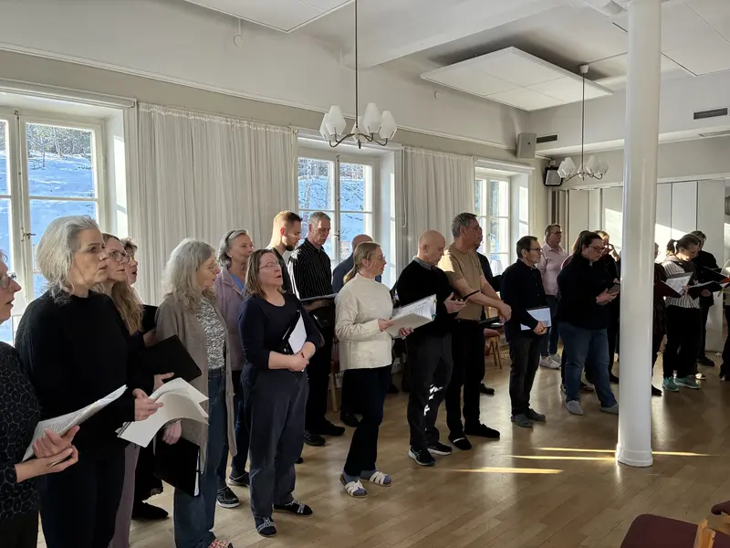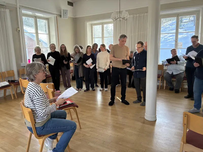 Ann Sandin-Lindgren besökte kören när de repeterade inför jubileumskonserten som heter "All of us".