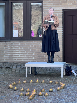 Efteråt var det en ljusmanifestation på gården där Johanna Björksten från Tyresö tjej- och kvinnojour höll tal.