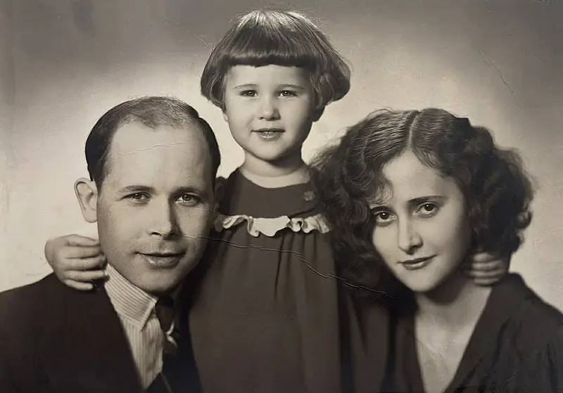 Peters farföräldrar Arthur och Maj Eriksson med äldsta dottern Solveig “Sosso” Åhman. Ca 1938.