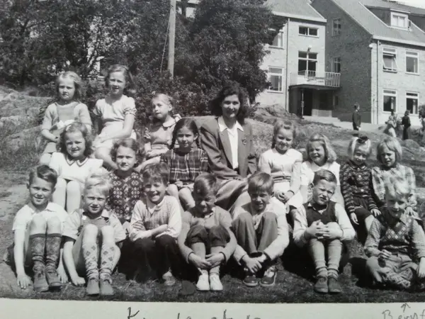 Bernt Karlsson i första klass på Kumla skola med lärarinnan Evy von Malmborg.