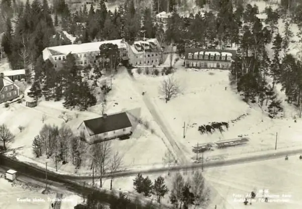 Kumla skola och rektor Jessie Navins bostad i förgrunden där även vaktmästare Hammar fick bo.