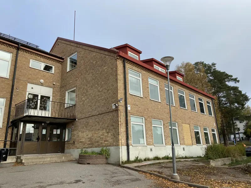 Man ser gaveln på det gamla ålderdomshemmet till vänster.