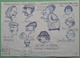 Ett flertal roliga episoder är knutna till Karolinahemmet. På bottenvåningen fanns Posten. Där bodde också Oskar Larsson med sin mor Gumman Laska, Emma Matilda Larsson. En trappa upp bodde Smen och Smeska, hans hustru Alma. Där bodde också August Bodén. Bodén var snarstucken och tacksam att reta. Detta utnyttjade Bertil ofta. Det hände ibland att Bertil, hans bror Gösta och Oskar Larsson träffades hemma hos Bodén. Bodén tyckte om att sjunga. Det kunde bli Halta Lotta eller Lugn, lugn vilar sjön. När de börjat sjunga så härmade Bertil Bodén, som då tystnade för att höra vad Bertil gjorde. Då sjöng Bertil som vanligt igen tills Bodén började sjunga. Då började Bertil härma igen. Det blev lite av växelsång.